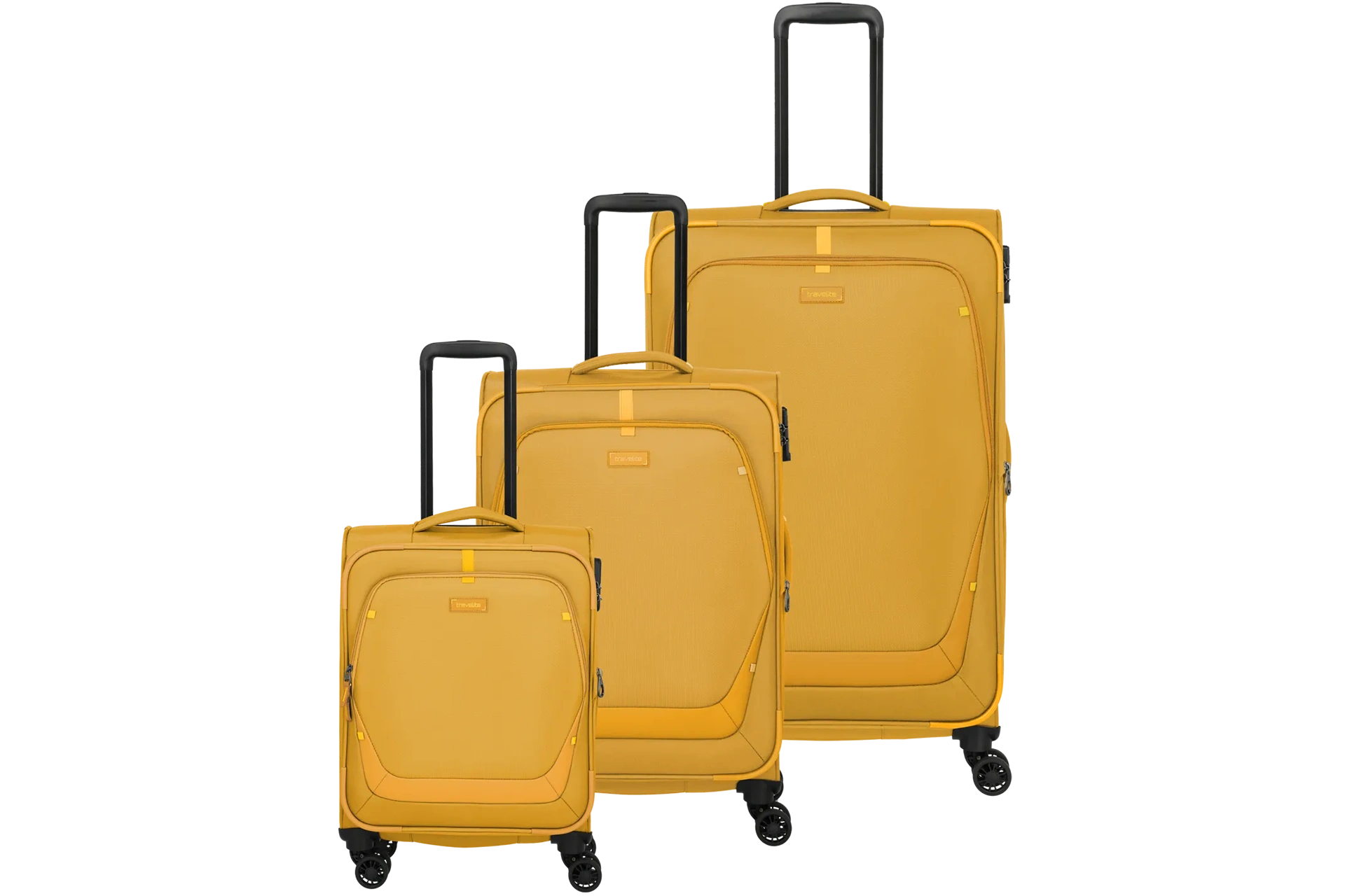Travelling without compromise - with this set, you always have the right suitcase size to hand. All three trolleys can be flexibly extended thanks to the expansion fold, so you're prepared for spontaneous shopping trips or longer stays. Perfectly coordinated, sporty in design and smart in handling.