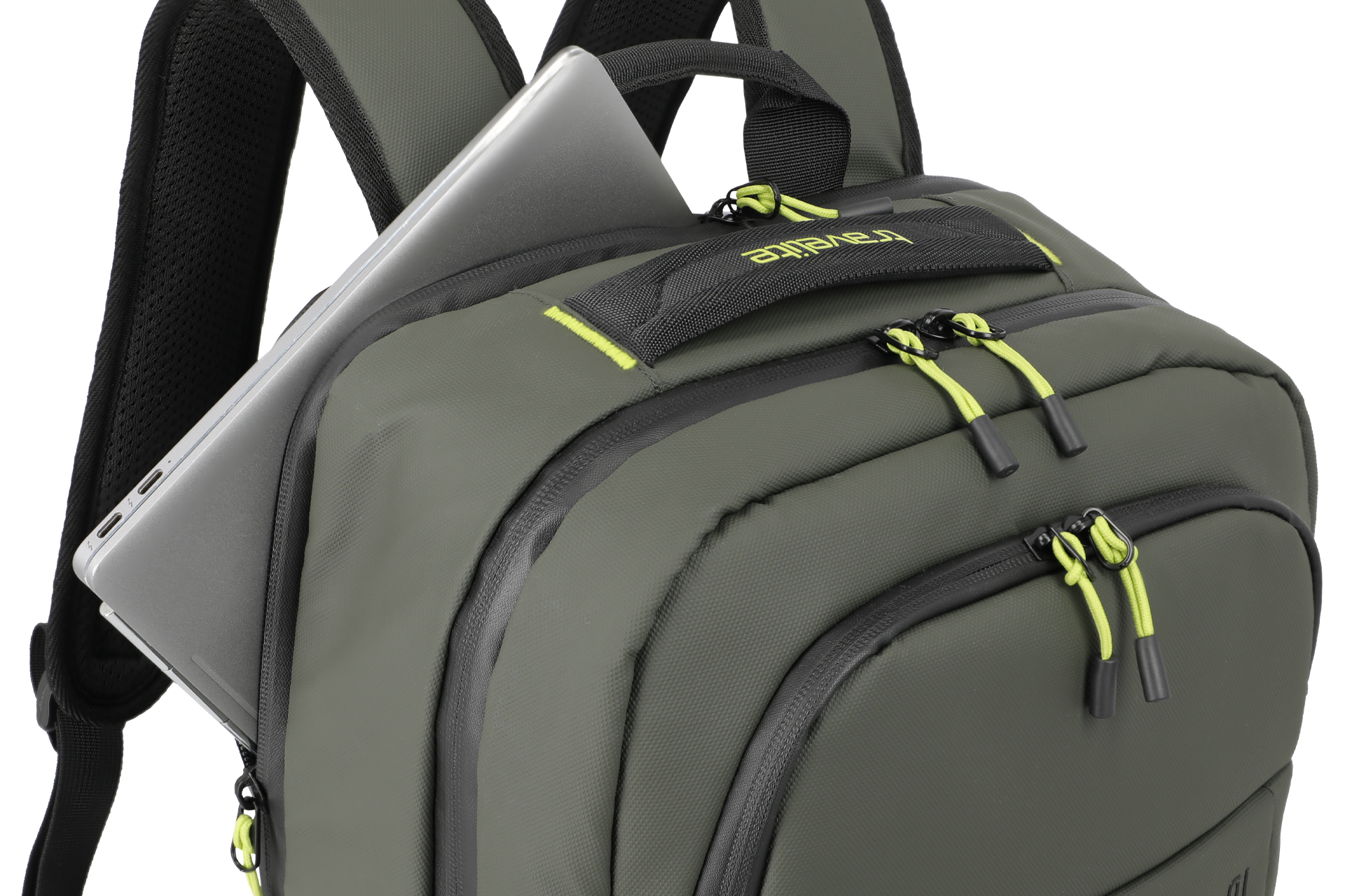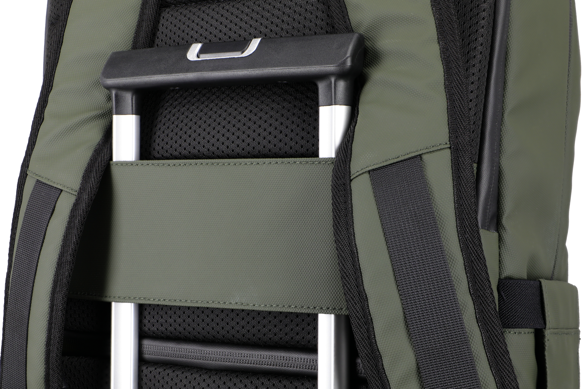 Makkelijk te combineren met een trolley tijdens het reizen. Met het lipje op aan de achterkant van de rugzak kan hij gemakkelijk op een frame worden geplaatst.